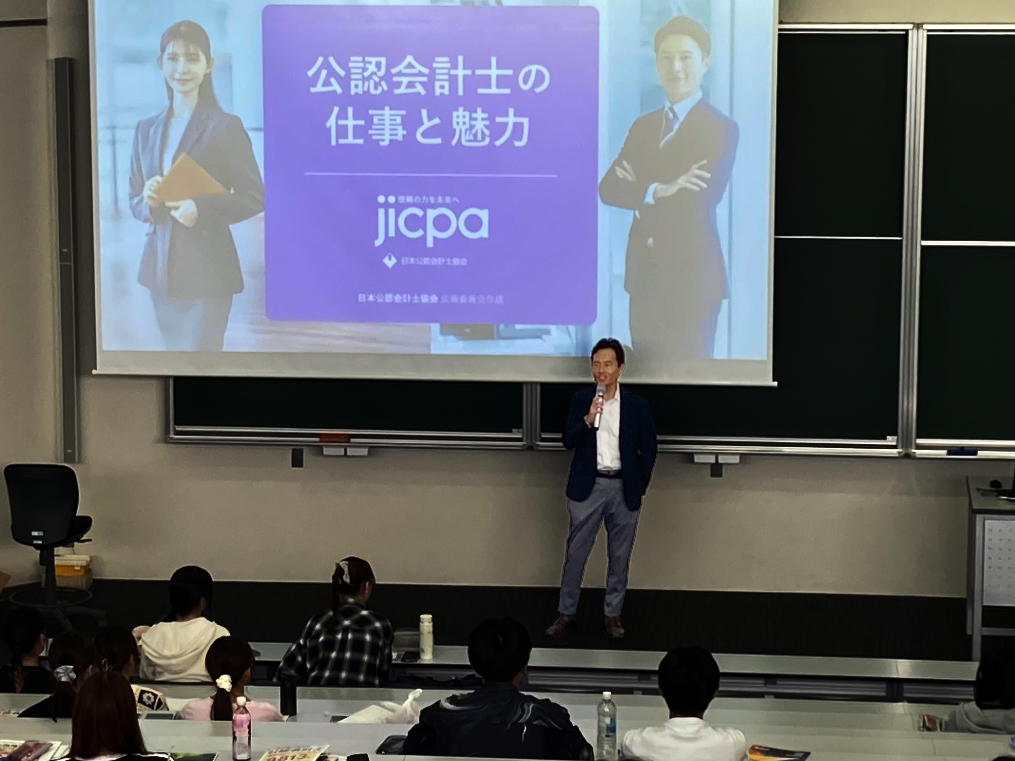 9月19日(金) 14:00から日本公認会計士協会東京会の主催で行われた公認会計士制度説明会に大学OBの公認会計士として高橋嘉明さんと遠藤が会計人会から参加し1年生の学生に会計士業務や仕事ぶりをお話させてもらいました。
